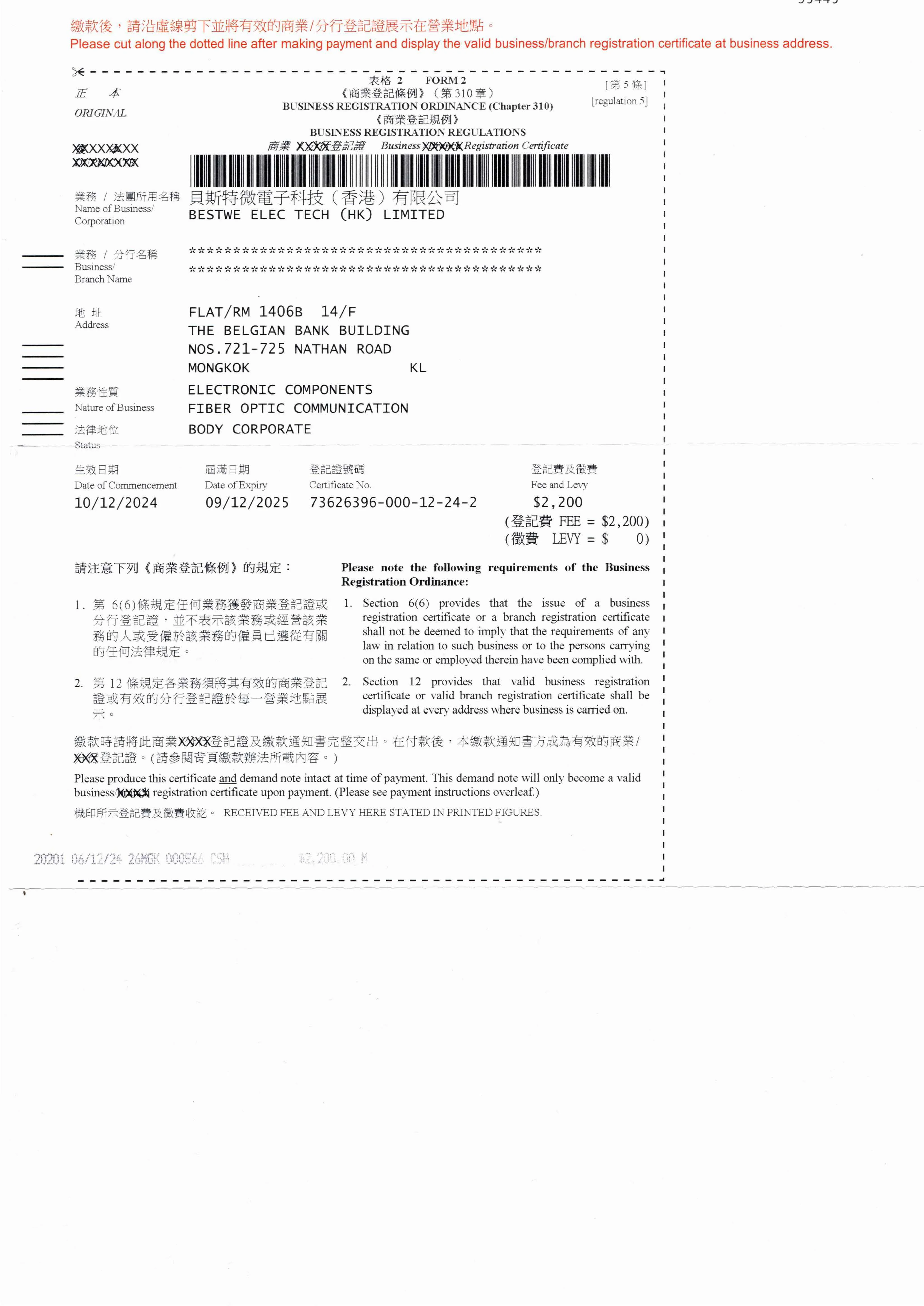 Company Name : BESTWE ELEC TECH (HK) LIMITED